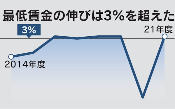 47都道府県の2021年度の最低賃金額が12日、出そろった。40都道府県が国の目安通りに28円上昇を決め、全体の15%にあたる7県はそれを超える金額を引き上げる。地域ごとの差は最大221円のままで変わらず、最高額に対する最低額の割合でみる格差は縮小する。