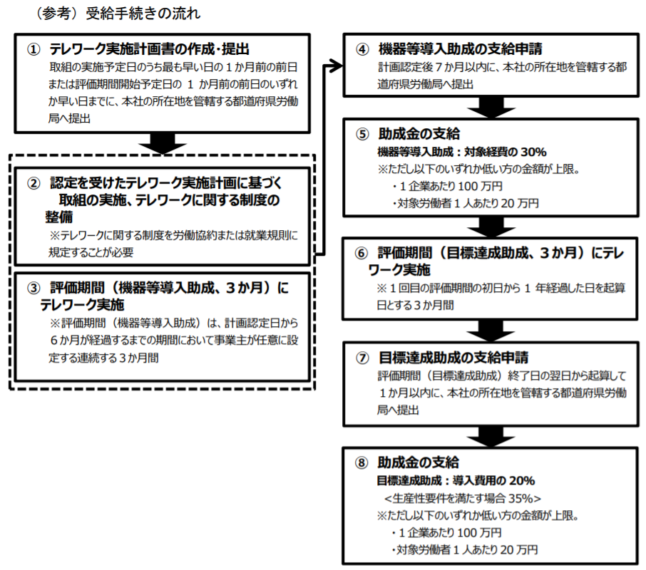 - テレワーク実施計画を作成し、労働局に提出して認定を受ける必要がある